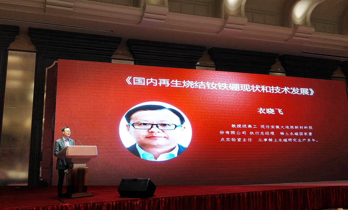 稀土永磁材料国家重点实验室主任衣晓飞教授、主任助理查善顺应邀参加了本次论坛。衣晓飞主任做了题为“国内再生烧结钕铁硼现状和技术发展”的大会报告,就我国再生烧结钕铁硼磁体现状和技术发展和与会专家及同行进行了交流。